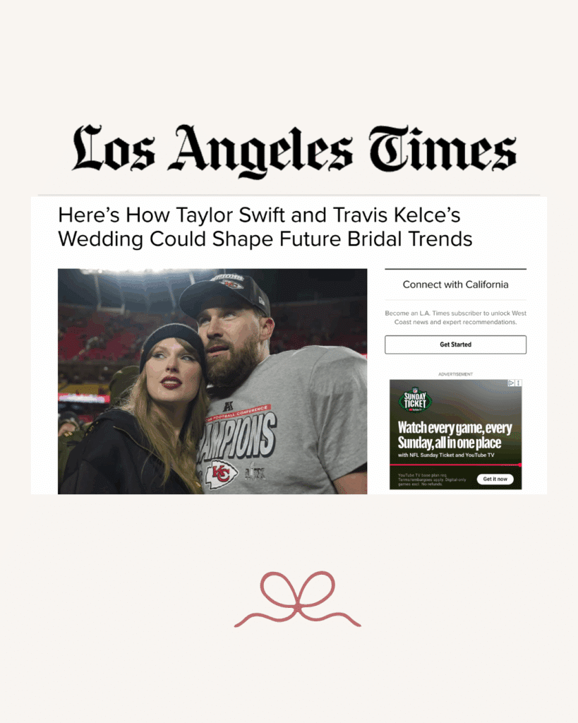 We were recently interviewed by the LA Times for our thoughts on how Taylor Swift’s and Travis Kelce’s engagement and future wedding will shape wedding trends for 2026 couples. Here’s what we had to say: